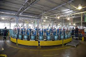 تعبئة أسطوانات الغاز الكبيرة المخصصة للمصانع والمراكز التجارية.