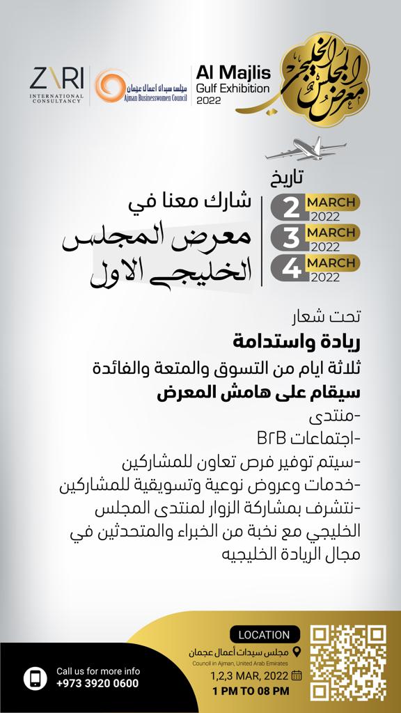 أعلن مجلس سيدات اعمال عجمان بالتعاون مع مركز زري العالمي للاستشارات وتنظيم المعارض والمؤتمرات عن إطلاق النسخة الأولى من منتدى ومعرض المجلس الخليجي، تحت شعار (الريادة ودورها في الاستدامة)، في الفترة من 2 إلى 3 مارس القادم بمركز ريادة أعمال عجمان.