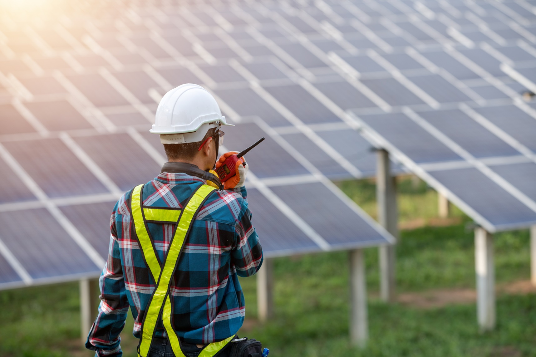 Portrait electrical engineers, solar power operational and command radio communication.