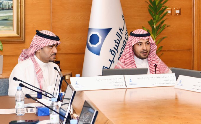 اجتمع الرئيس التنفيذي لـ “صندوق التنمية الصناعية” السعودي؛ صاحب السمو الملكي الأمير سلطان بن خالد آل سعود  برئيس وأعضاء مجلس الإدارة، ورؤساء ونواب لجان الأعمال في غرفة الشرقية اليوم الخميس؛ مستعرضًا خلال اللقاء رؤية الصندوق تسعى لتمكين تحوّل المملكة لتصبح قوة صناعية رائدة ومنصة لوجستية عالمية؛ مستعرضًا سموه أبرز المنتجات التمويلية والشراكة مع القطاع الخاص.